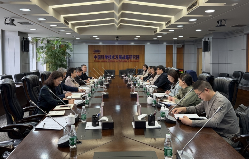 2025年10月24日,江苏省科学技术发展战略研究院党委书记吴彭一行到访中国科学技术发展战略研究院调研交流。战略院党委书记刘冬梅主持交流座谈,智库建设与科研管理办公室、科技统计与区域创新研究所、科技与产业发展研究所相关同志参加会议。